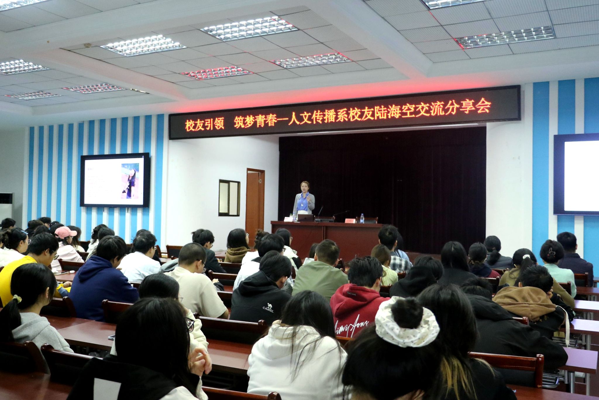 本次分享会特邀我校2013届广告学专业校友陆海空女士担任主讲嘉宾。陆海空以《广告与新媒体领域的机遇探索及职业规划指南》为题,结合自身从校园到职场的完整成长历程,为在场学弟学妹带来了一场内容翔实、启发深刻的分享。她深情回顾大学求学时光,分享在校期间的成长点滴与难忘经历,讲述了自己考入中国地质大学攻读硕士学位的奋斗过程,并真诚分享了在头部上市集团深耕十余年所积累的行业洞察、实战经验与人生感悟。