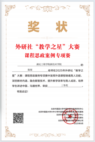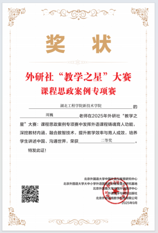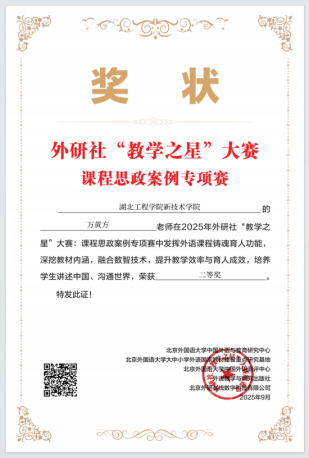 本网讯 近日,2025年全国高校外语课程思政教学案例大赛结果正式公布,我校教师表现优异,斩获二等奖2项,三等奖2项。